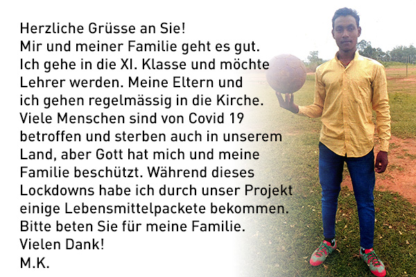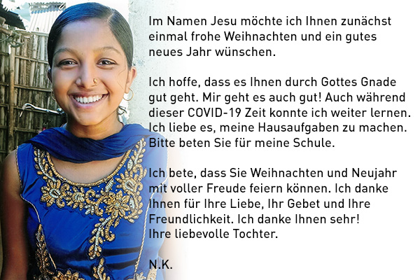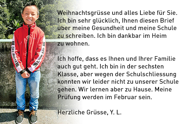 Jeweils zum Jahresende senden uns die Projektpartner Weihnachtskarten der Kinder, die durch uns unterstützt werden. Lesen Sie hier ein paar Beispiele, wie es den Kindern und Jugendlichen aktuell geht und was sie uns geschrieben haben.