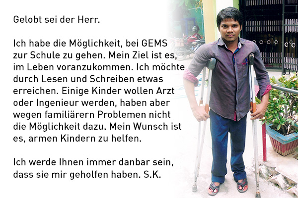 Vor 30 Jahren begannen wir drei Polio-Heime von GEMS (Gospel Echoing Missionary Society) in Nordindien zu unterstützen.