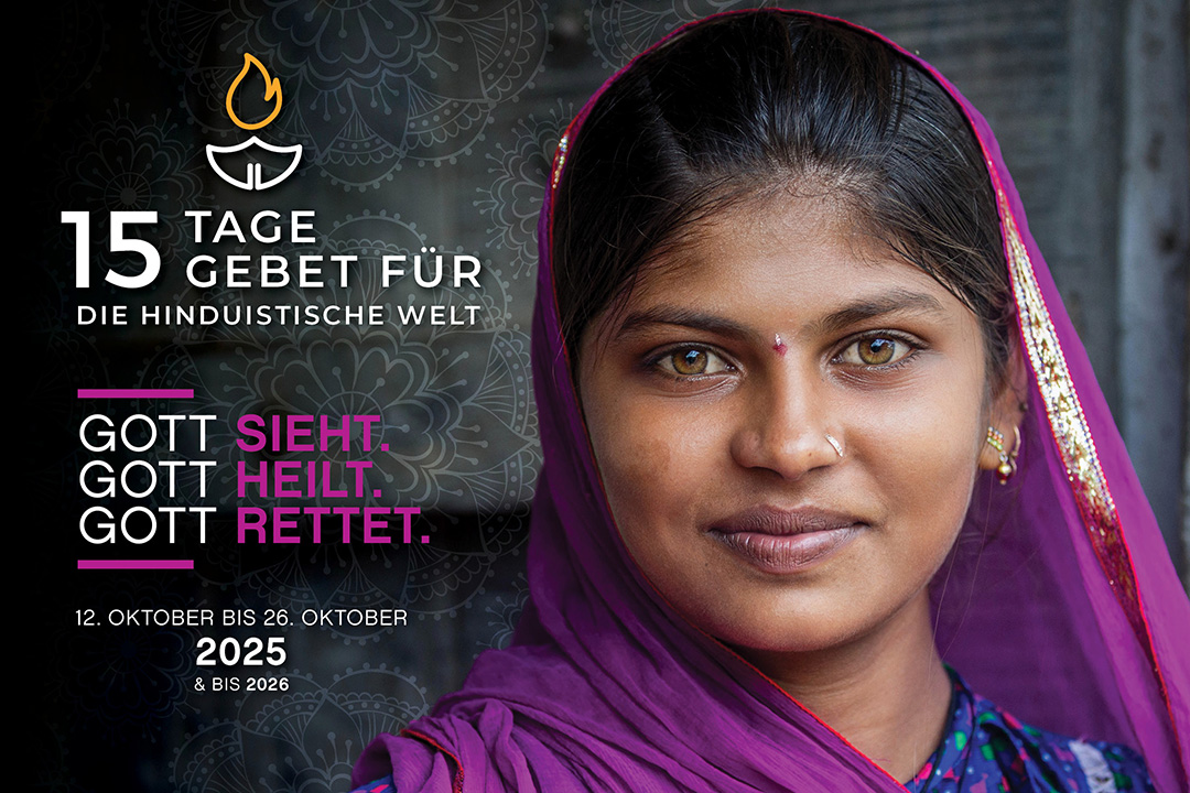 In der Zeit vom 12. bis 26. Oktober 2025 beten weltweit Christen für ihre hinduistischen Nachbarn. Auch im deutschsprachigen Raum beten wir darum, dass Hindus gesegnet werden. Jetzt das Gebetsheft bestellen.