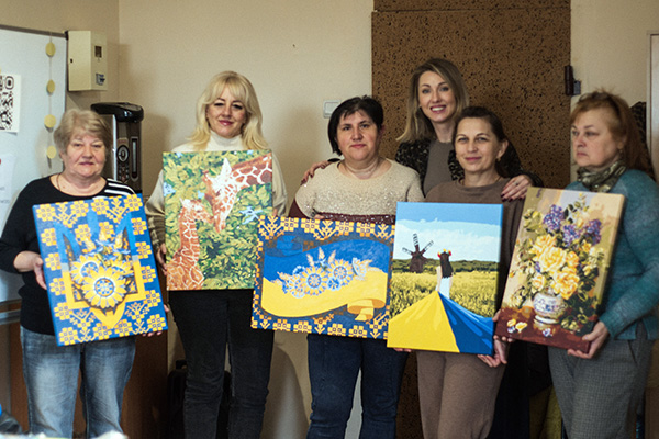 Anfang 2025 wurde ein weiteres Projekt für die Geflüchteten gestartet – einen Kunstraum. Dies ist ein kreativer Ort, an dem Menschen malen, gestalten, sich austauschen oder einfach in einer künstlerischen Atmosphäre entspannen können. Der Raum ist jeweils am Dienstag geöffnet. Meistens wird er von Frauen besucht, die monatliche humanitäre Hilfe erhalten, aber dies ist keine Voraussetzung – wir sind für alle Geflüchteten offen.